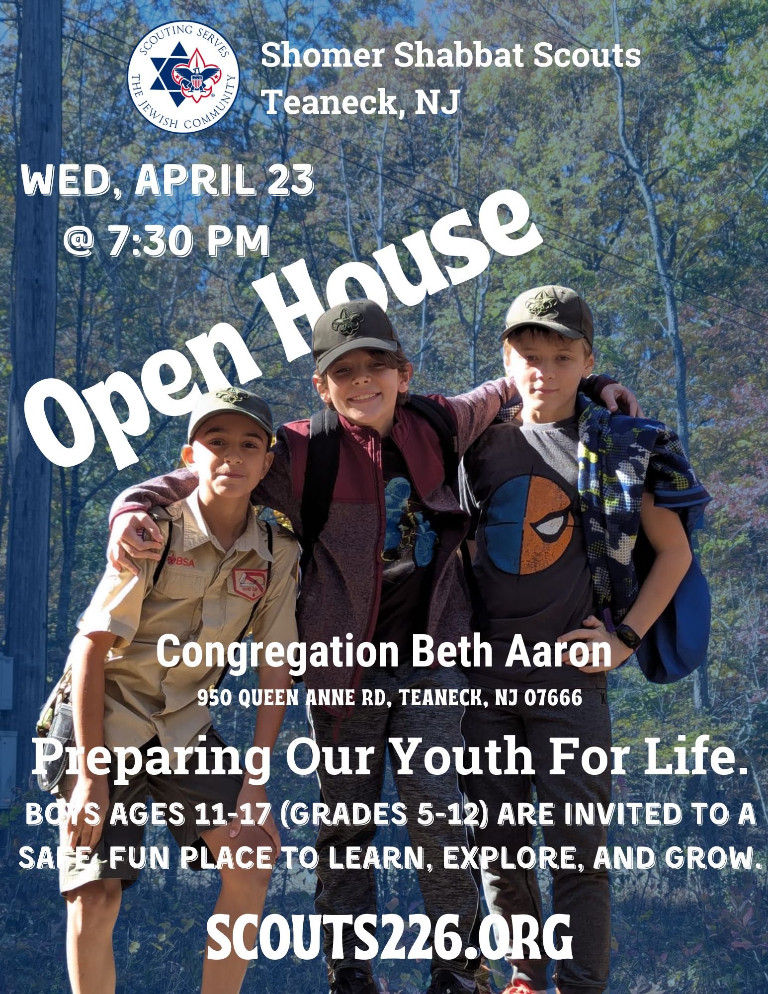 Discover adventure, friendship, and Jewish values in a welcoming and inclusive environment. Our troop offers exciting activities. Come learn outdoor skills, earn badges, and make lifelong memories. Our troop invites boys ages 11-17 (grades 5-12).